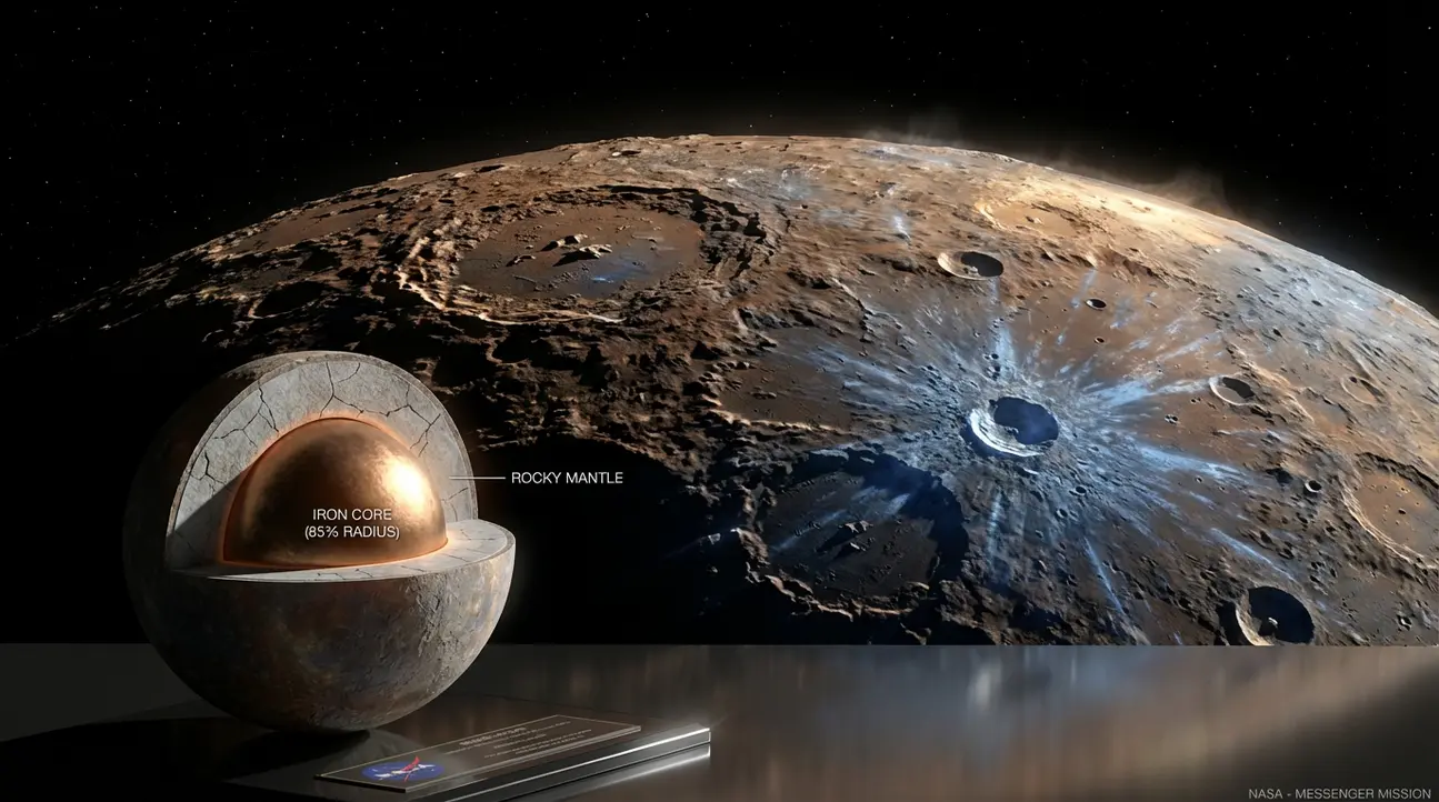 Mercúrio, o planeta mais próximo do Sol, intriga cientistas por sua peculiaridade que desafia os paradigmas conhecidos de formação planetária. Apesar de ser o menor planeta do Sistema Solar, com uma massa vinte vezes inferior à da Terra, Mercúrio possui um núcleo de ferro aberrantemente extenso, correspondendo a 85% de seu raio. Este fenômeno levanta questões sobre a perda de manto por impacto ou evaporação solar. Além disso, exibe um campo magnético fraco, mas inesperado, e variações extremas de temperatura.
