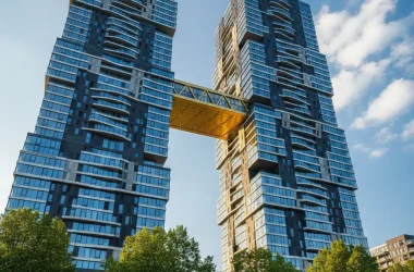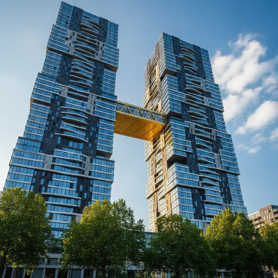 O empreendimento The Sax, em construção na cidade de Roterdã, simboliza uma paradigmática fusão de arte, engenharia e sustentabilidade. Inspirado na forma curva e sofisticada de um saxofone, seu desenho é resultado de uma arquitetura parametrizada que desafia a rigidez tradicional dos edifícios residenciais, investindo em fachadas ondulantes e ângulos dinâmicos para potencializar efeitos visuais e iluminação natural ao longo do dia. Esta abordagem não apenas confere singularidade estética, mas também otimiza o uso da luz solar e a eficiência energética, aspectos cada vez mais requisitados em construções contemporâneas ao redor do mundo.