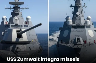 Projetado inicialmente para bombardeios terrestres, o Zumwalt foi transformado para missões de guerra de superfície, com mais de 80 células de lançamento vertical e integração futura de mísseis hipersônicos. A Marinha dos EUA lidera esta revolução naval, marcada pela alta automação e propulsão elétrica integrada.